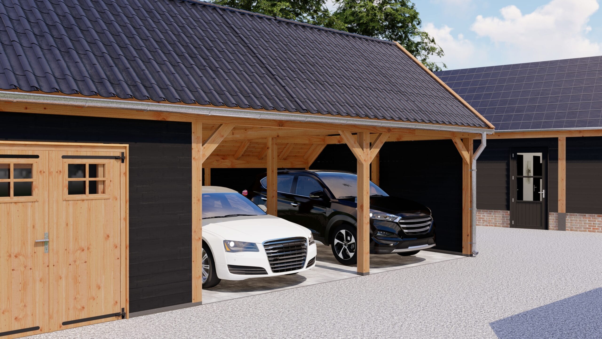 Door de keuze uit verschillende dakbedekkingen kunt u deze kapschuur precies de juiste uitstraling meegeven die u wenst. Kies bijvoorbeeld voor oud-Hollandse gebakken pannen voor een meer landelijke uitstraling, of voor een modernere look met vlakke leipannen.