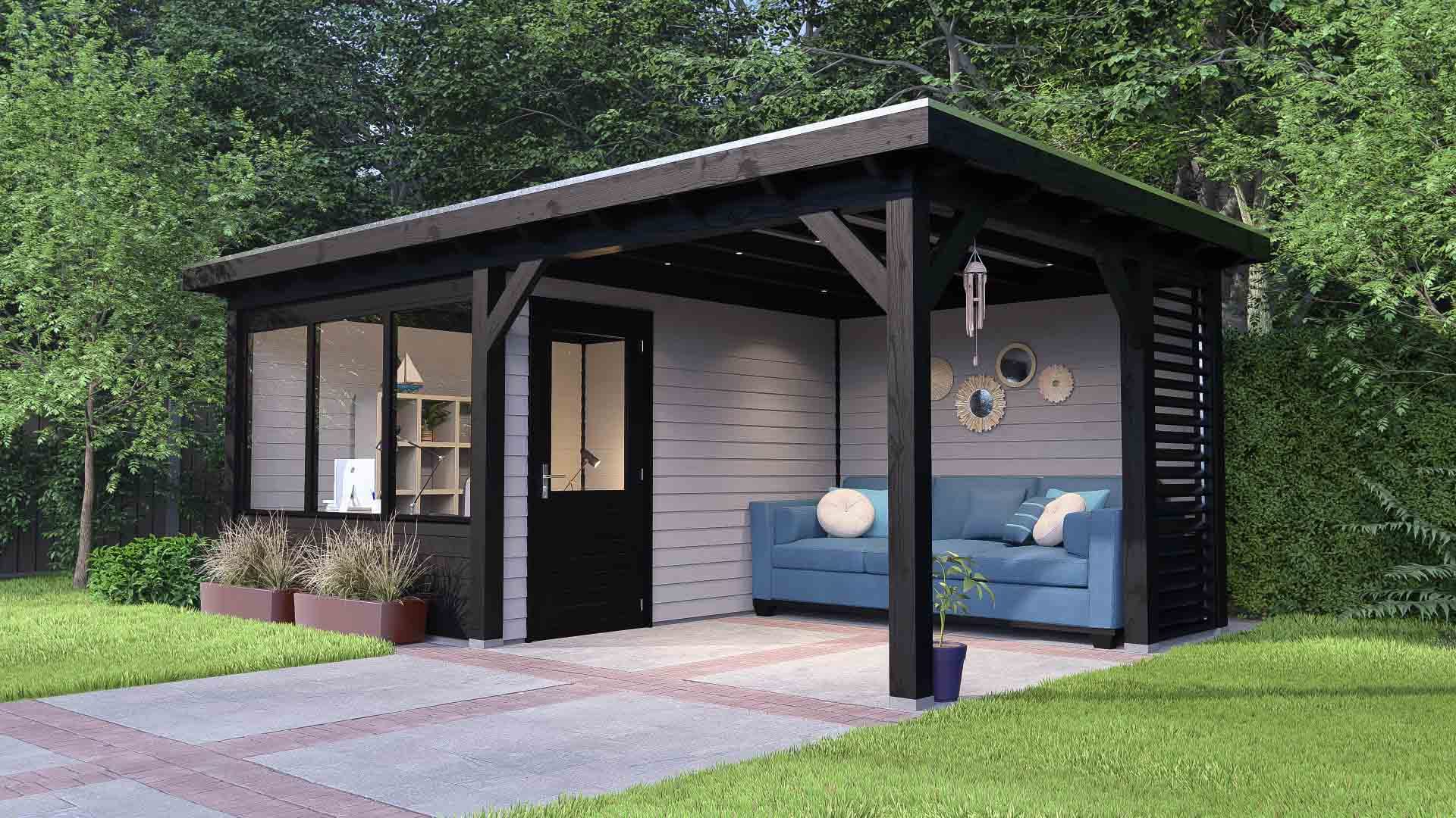 Het buitenverblijf Bergamo heeft, samen met zijn verwante model Rome, een unieke dakconstructie, die wordt gecombineerd met zwaluwstaartverbindingen. Deze speciale constructie maakt het mogelijk om het buitenverblijf Bergamo in ruime afmetingen te realiseren zonder tussensteun. De afgeschuinde overstekklossen zorgen voor een traditioneel en landelijk karakter. Door deze eigenschappen past het Bergamo buitenverblijf uitstekend in diverse omgevingen en biedt het veel mogelijkheden voor aanpassing aan uw buitenruimte.