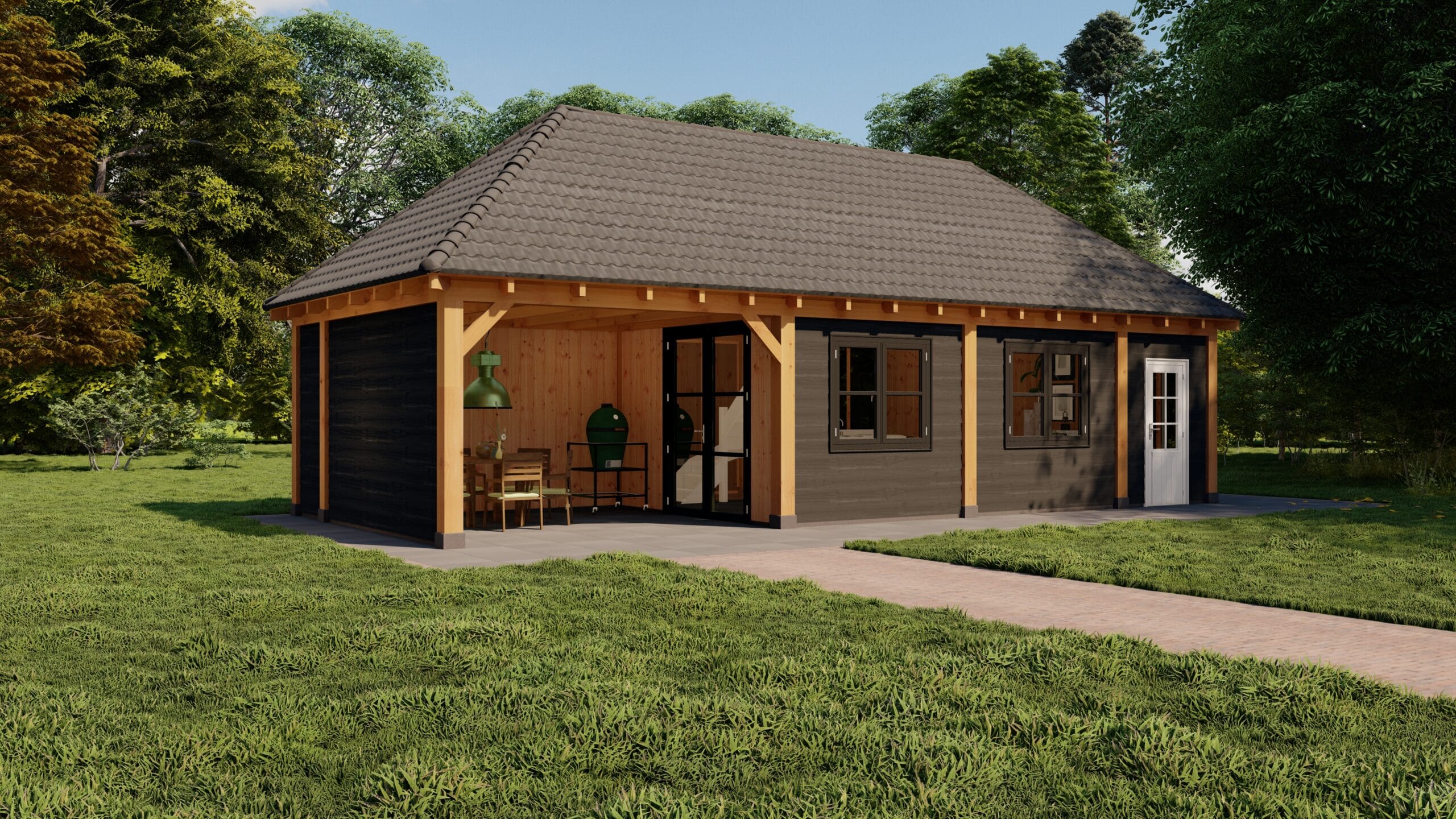 Schildkap Dublin XXL combineert een landelijke uitstraling met een robuuste constructie. De authentieke pen-en-gatverbindingen en gebogen schoren zorgen voor een karakteristiek geheel. Met staanders van 190 x 190 mm is dit model ideaal voor carports en grotere schuren. Het rieten dak maakt de afwerking compleet en geeft een sfeervolle uitstraling.