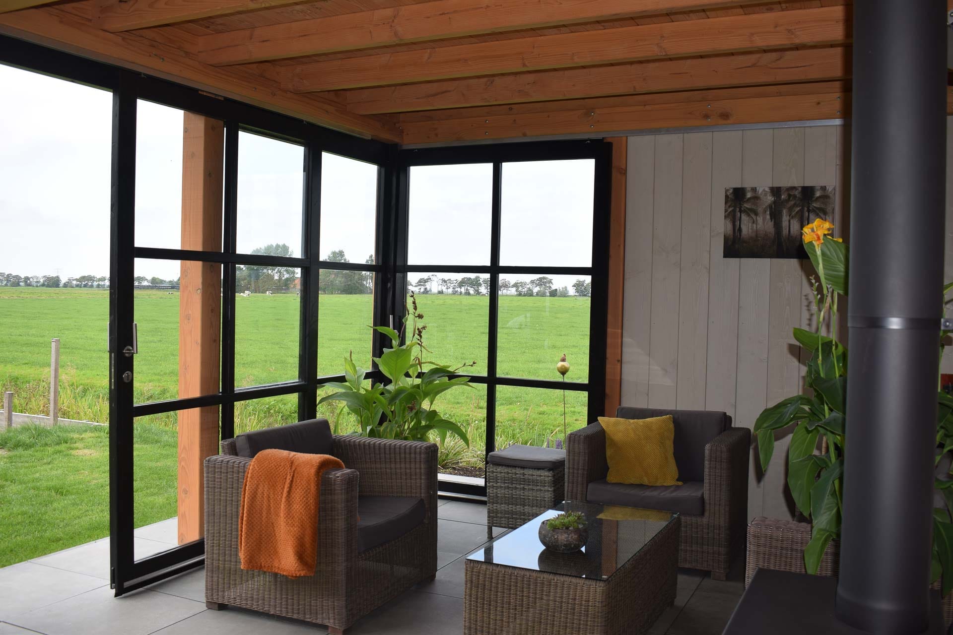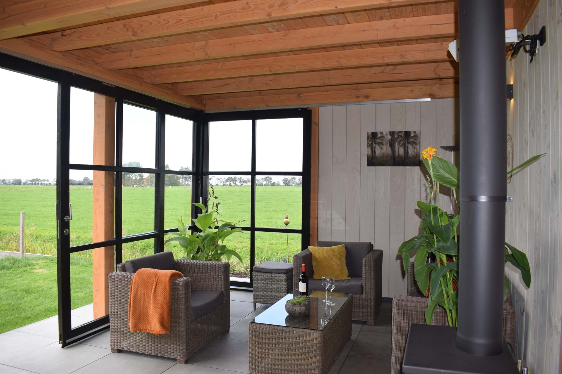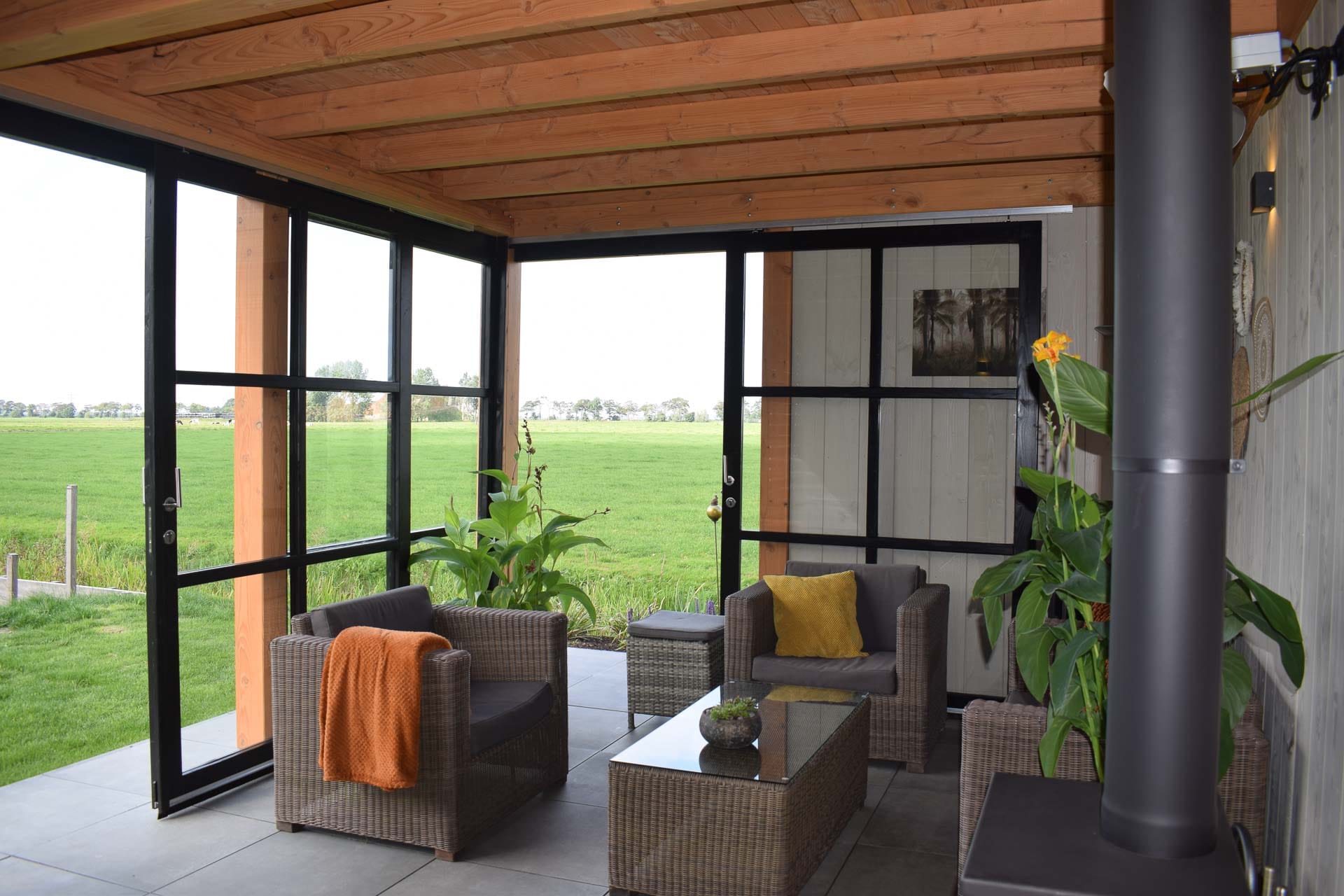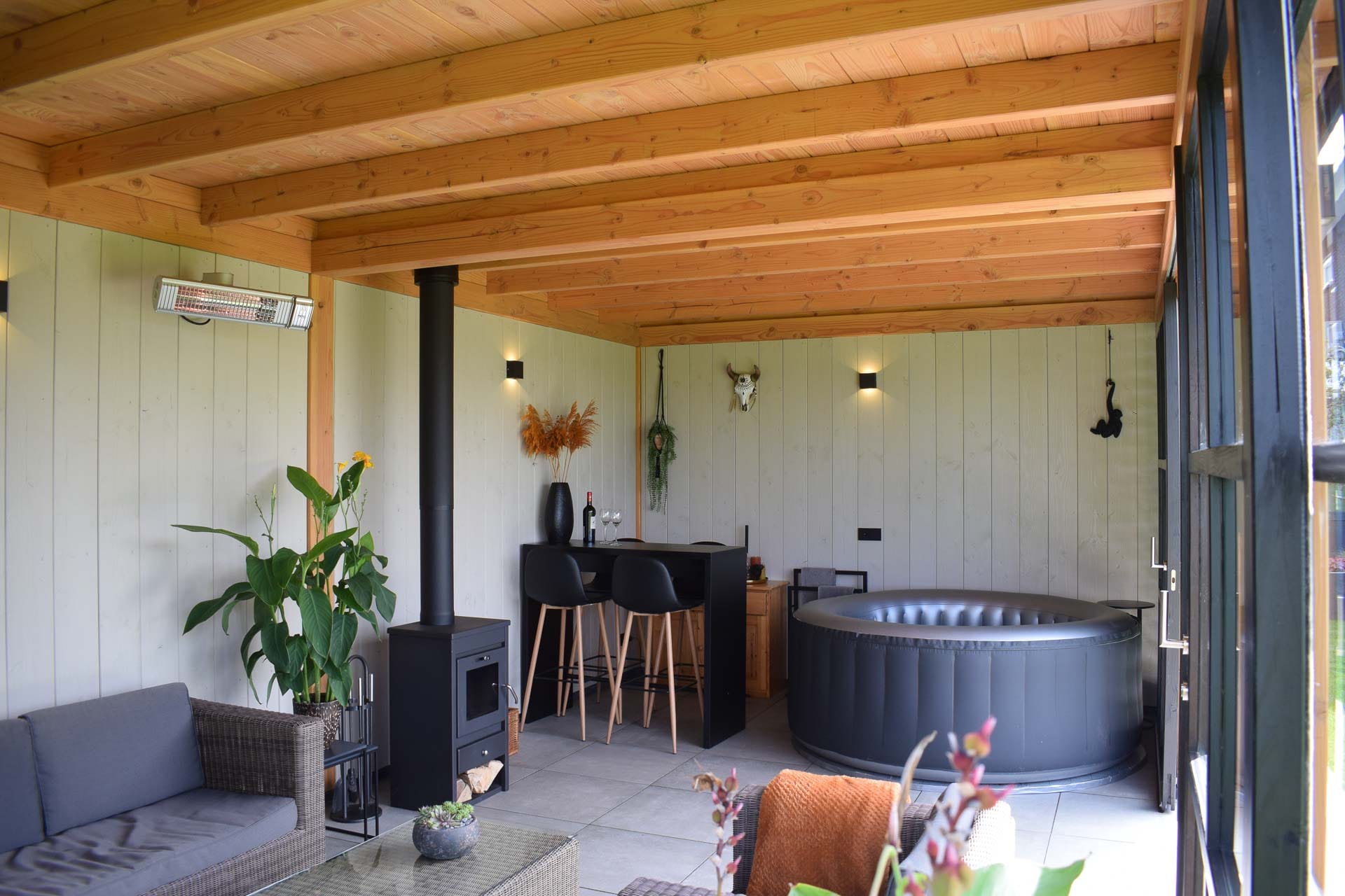 Een warme uitstraling met modern comfort: deze maatwerk douglas overkapping met glazen wanden biedt ultiem buitenleven het hele jaar door. Laat u inspireren en plan een vrijblijvende afspraak!