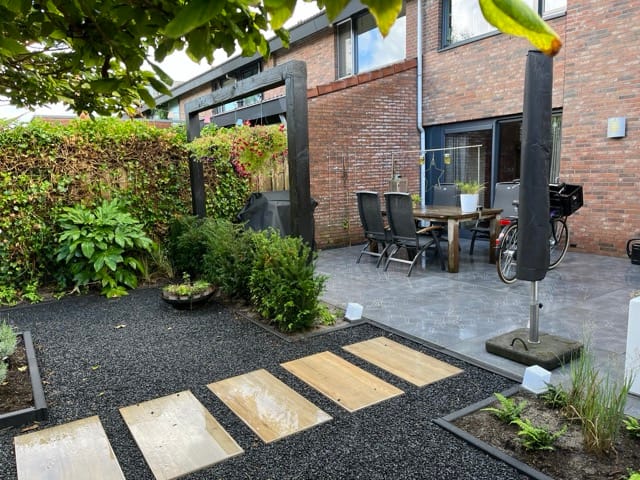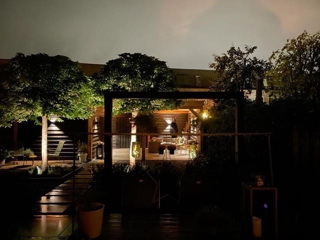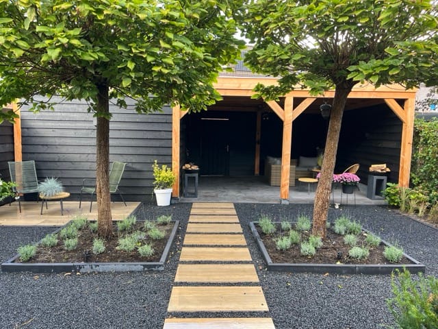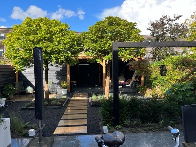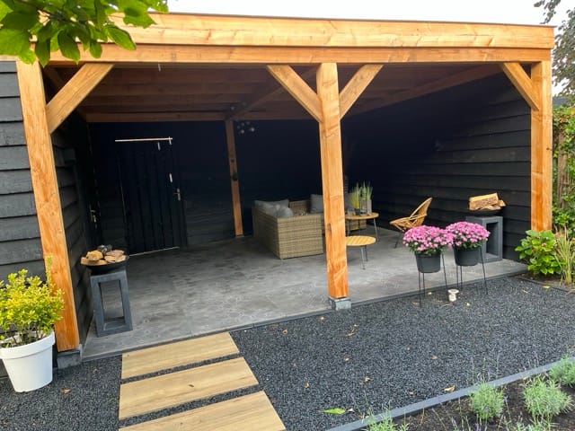 Voor dit tuinproject in Nieuwegein plaatsten we een robuuste douglas overkapping met zwarte wanden. Een stijlvol en duurzaam verlengstuk van de tuin, perfect om het hele jaar door te genieten. Ook interesse? Maak nu vrijblijvend een afspraak en ontdek de mogelijkheden.