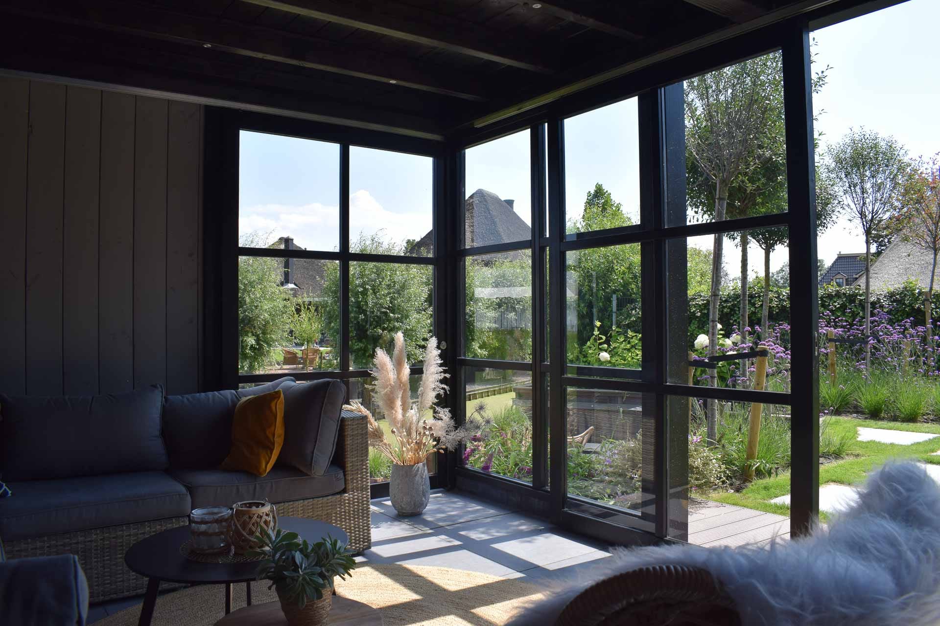 Deze moderne douglas overkapping met glazen wanden en berging straalt rust en stijl uit. Volledig op maat gemaakt voor ultiem buitenleven. Laat u inspireren en plan een vrijblijvende afspraak!
